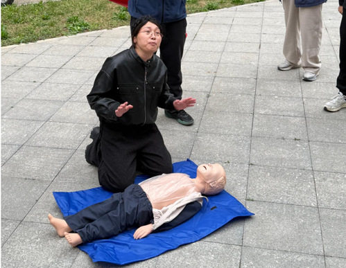 活动特别邀请学院办公室航医翟老师开展急救技能专题教学。翟老师结合航空安全与校园应急需求,系统讲解心肺复苏(CPR)操作流程、关键要点与注意事项,通过人体模型分步演示判断意识、胸外按压、开放气道、人工呼吸等规范动作,并指导师生现场模拟练习,有效提升大家在突发事件中的自救互救能力。